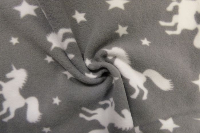 A Lovely 100% Polyester Soft & Cosy Anti-Pill Polar Fleece Unicorn Print in Mid Grey & White