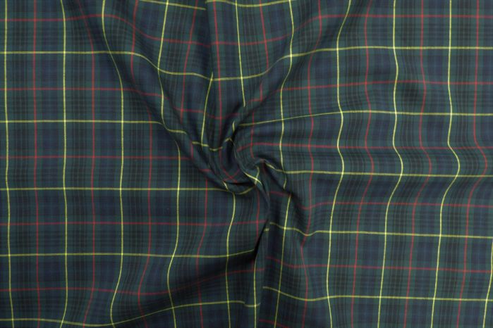 A Lovely Typical Replica Scottish Tartan Check Lightweight Shirting In Tones Of Forest Green, Red & Yellow