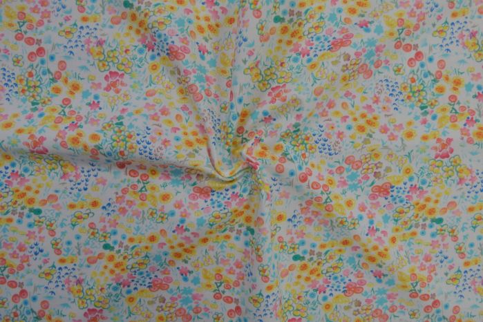 A Lovely Pure Cotton Soft Handle Lawn Digital Print in Colourful Tones of Turquoise, Pink, Yellow & White