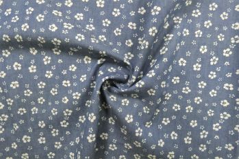 A Lovely Cotton Chambray Denim Floral Print In Tones Of Denim Blue, Rose Pink, And Green