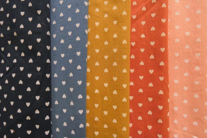 Organic Washed Cotton Loveheart Prints In A Lovely Range Of Colours