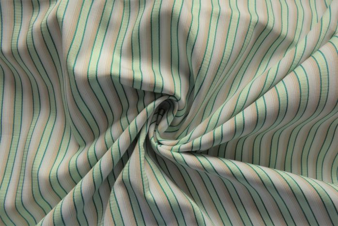 A Lovely Ex-Paul Smith Designer Italian Textured Striped Shirting in Green Tones and Beige.