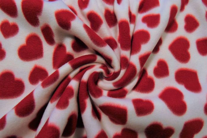 A Lovely 100% Polyester Soft & Cosy Anti-Pill Polar Fleece Love Heart Print in Ruby & White