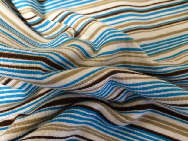 A Nice Stretch Jersey Stripe In Teal, Biscuit & Cocoa