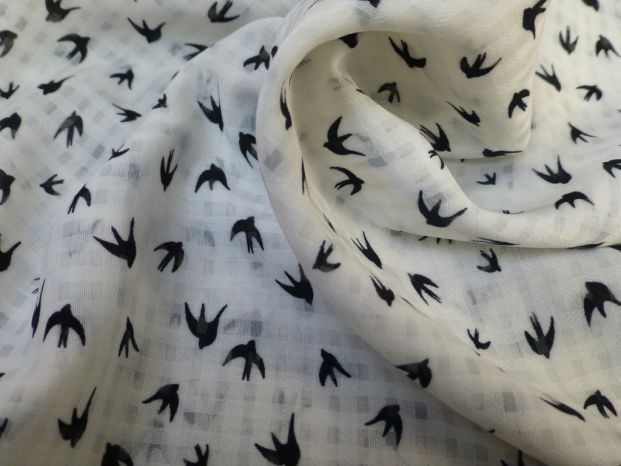 Soft & Drapey Self-check With A Stunning Swallow Print - In Black & White...