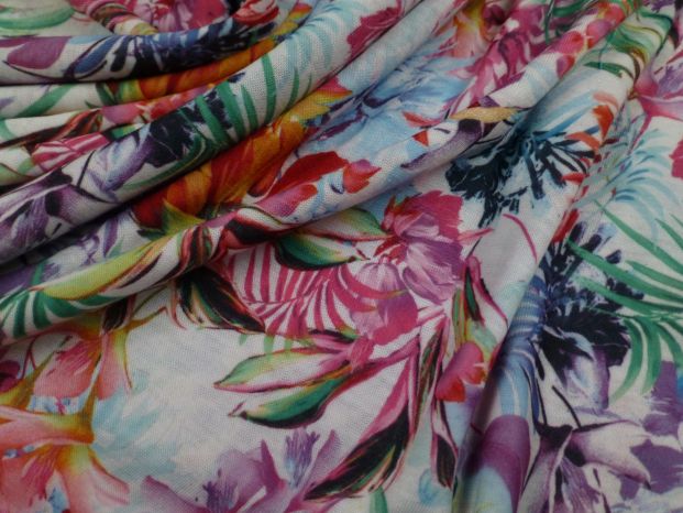 A Tropical Floral Fushcia & Sky Blue Printed Jersey