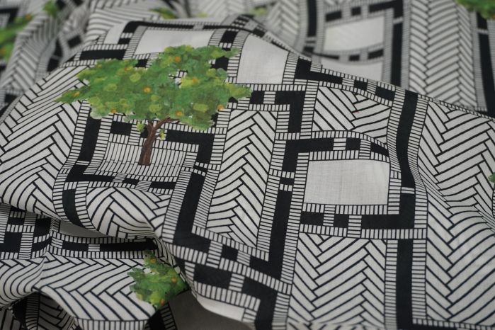So Cute....Little Water Colour Effect Trees Dotted Amongst a Black & White Geometric, Abstract Print